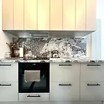 La cocina completa, equipada сon servicio de tetera/cafetera y nevera, un horno y cristalería, es perfecta para preparar comidas. La parada de autobús Arkady está muy cerca de esta propiedad.